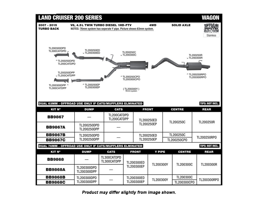 King Brown Exhaust System to suit Toyota Landcruiser 200 Series V8 4.5L (No Cat) 2007-2015