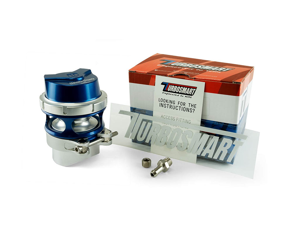 Includes: GenV Raceport 50mm BOV 1/8 NPT Vacuum fittings Vband Assembly Profiled Alloy Weld-On Fitting Blue Spring Rated -18 to -14 InHg (installed). Turbosmart Decal